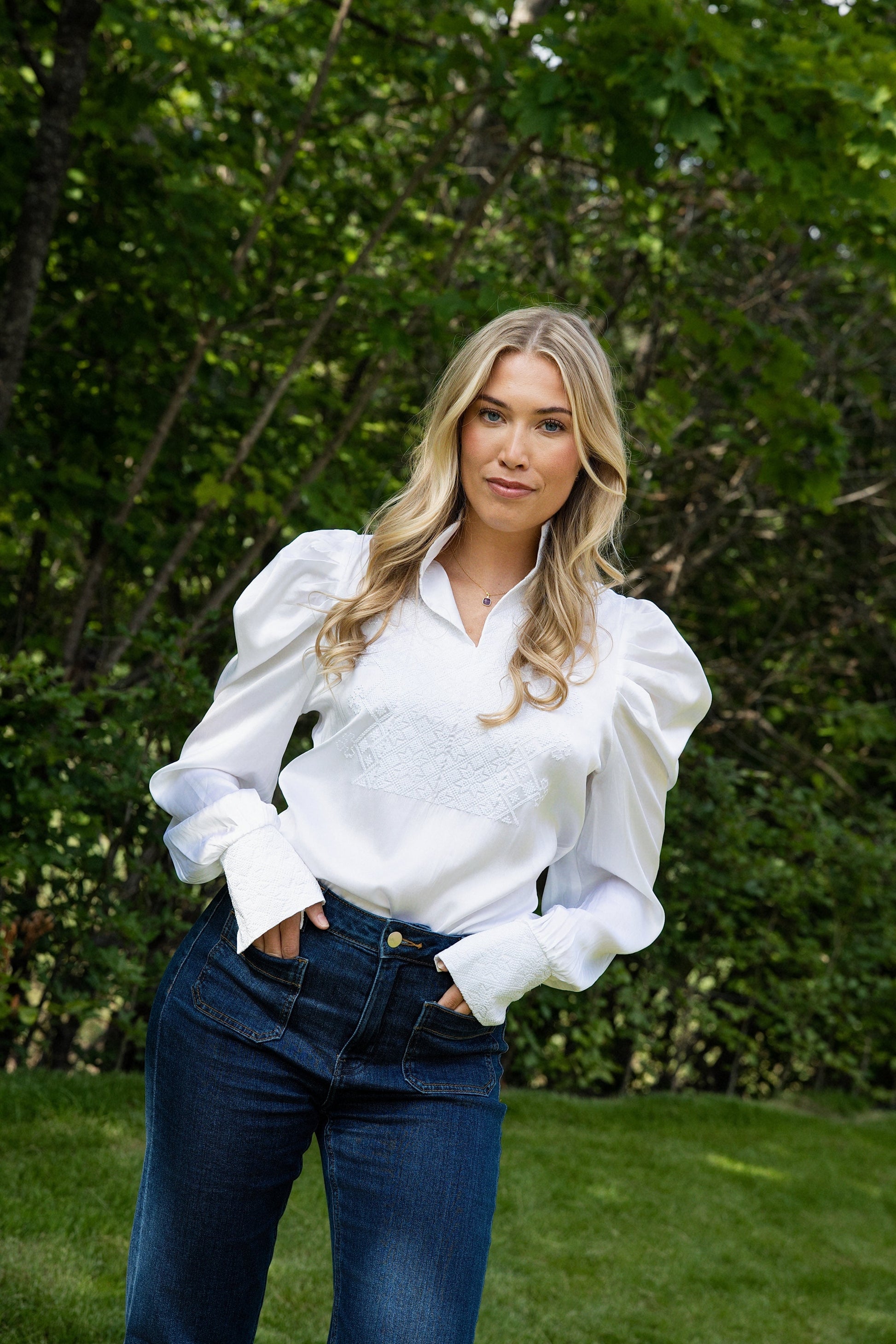 Drömblusen i vitt med vitt broderat siden