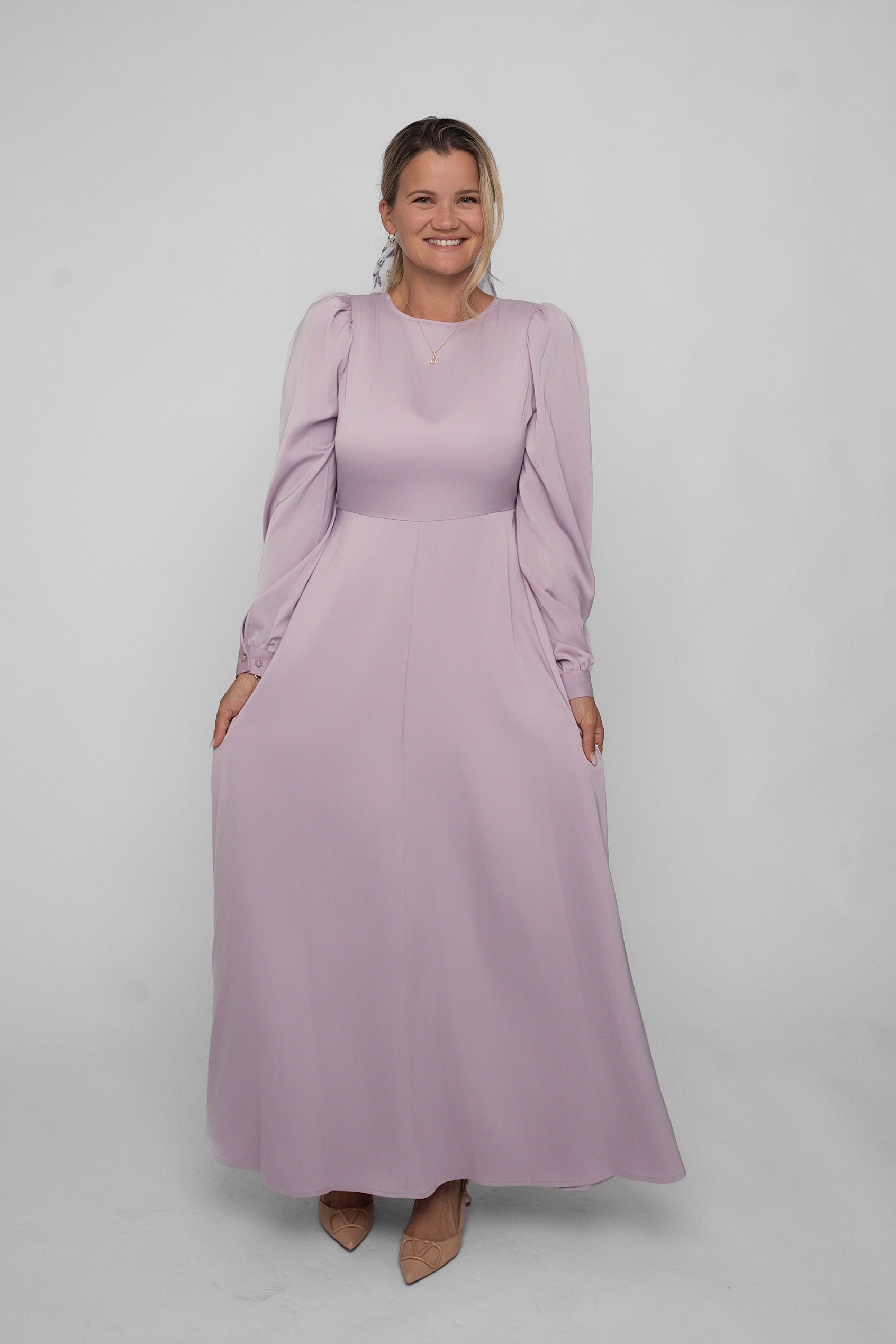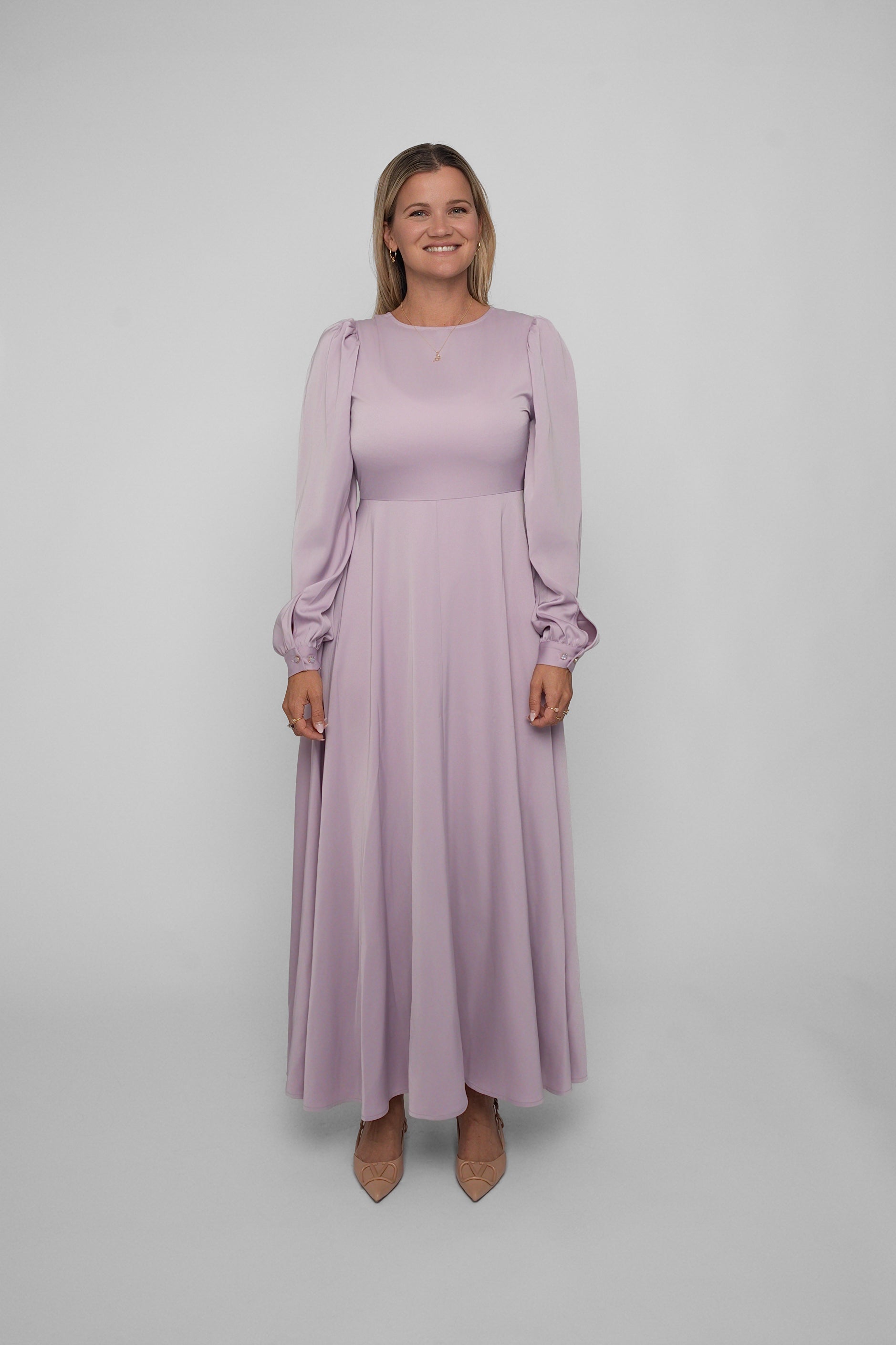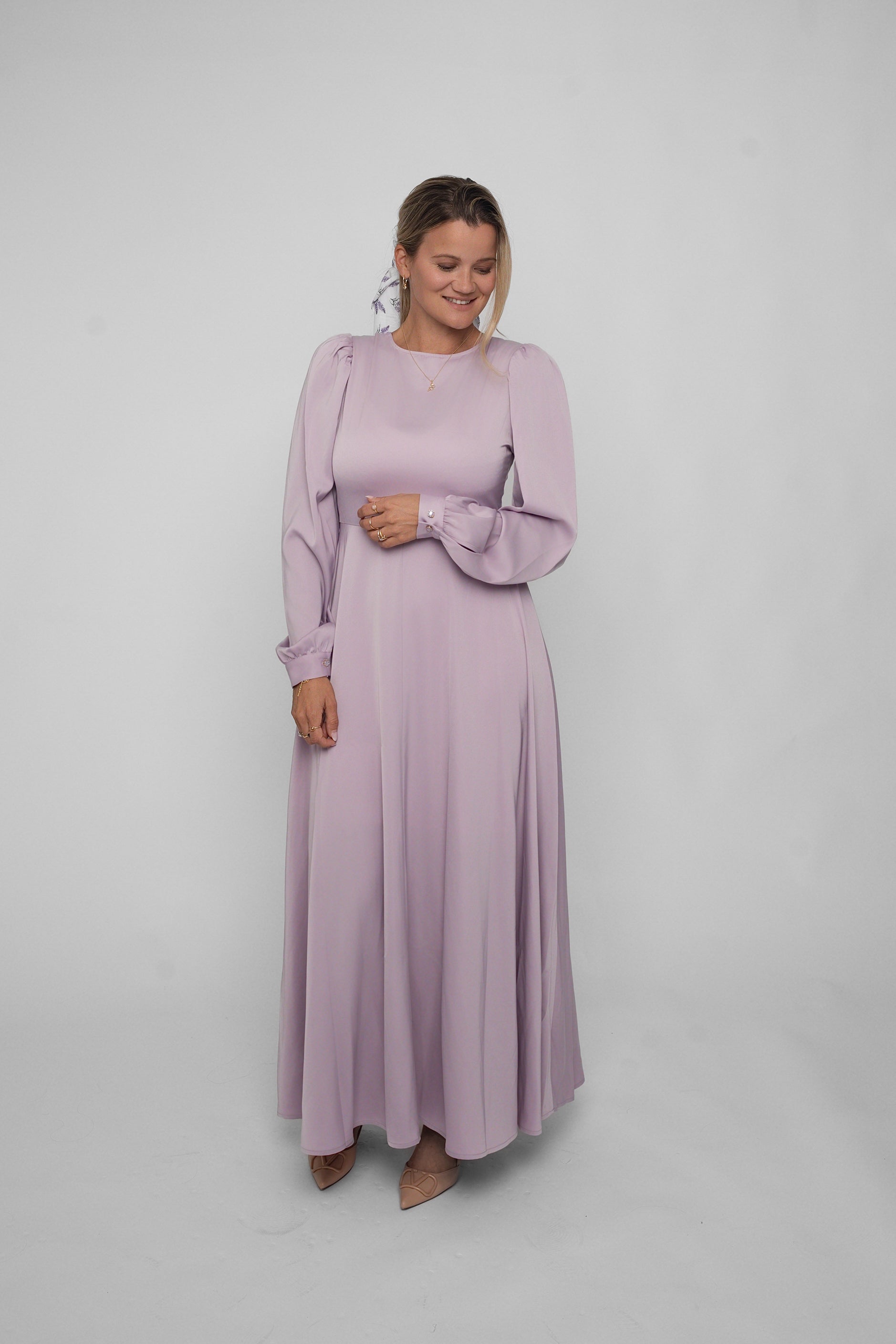 Madikken-klänningen i lila satin är skapad för dig som älskar tidlös elegans med en lekfull twist.