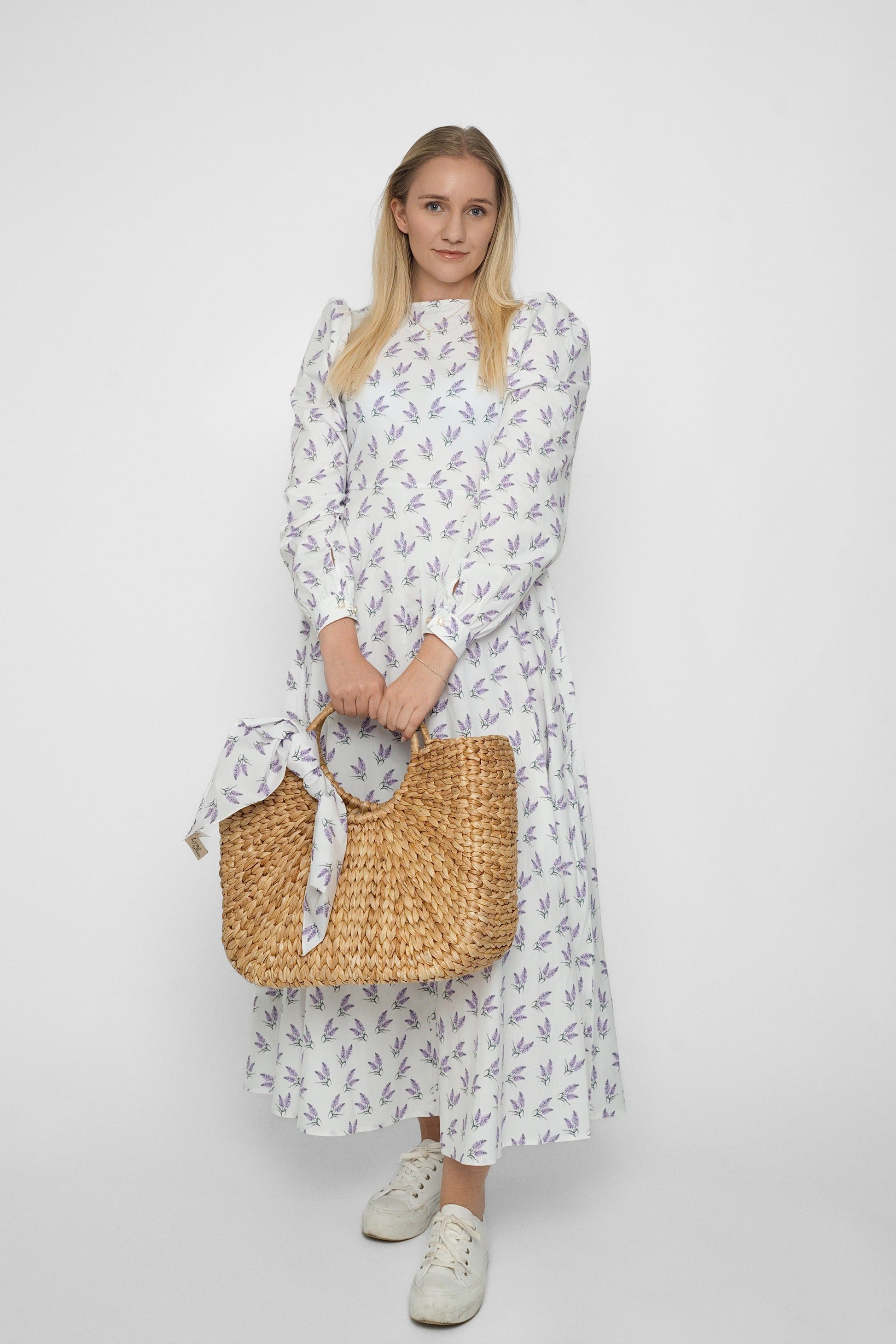 Och med den matchande halsduken får du en komplett stil som fungerar lika bra för en trädgårdsfest som för en picknick i parken.