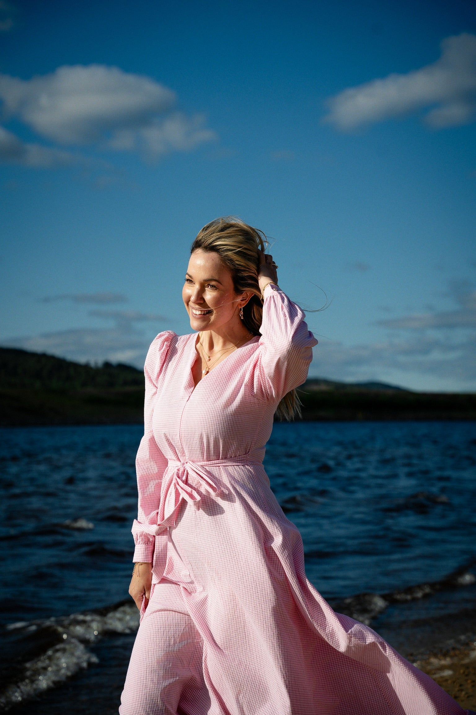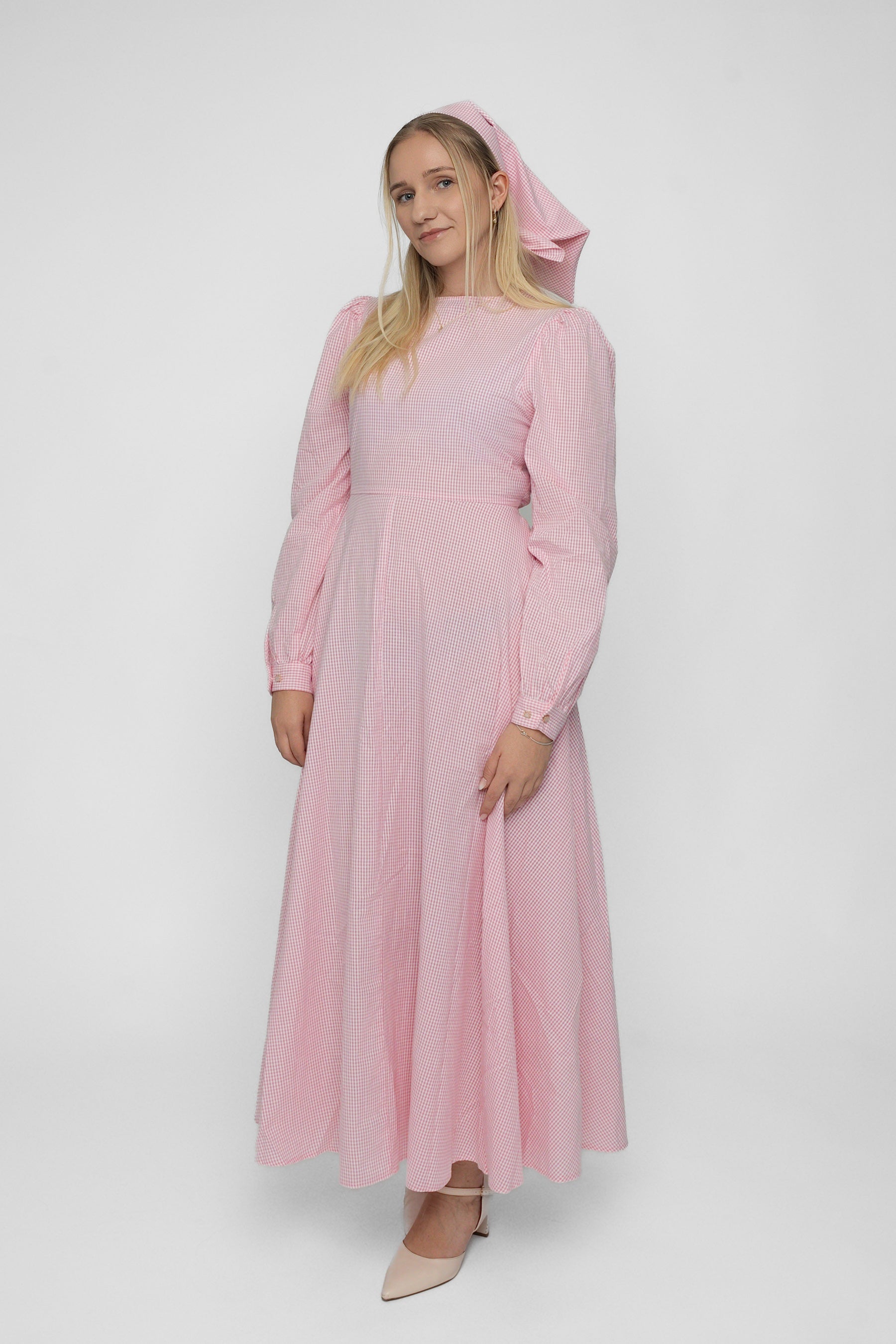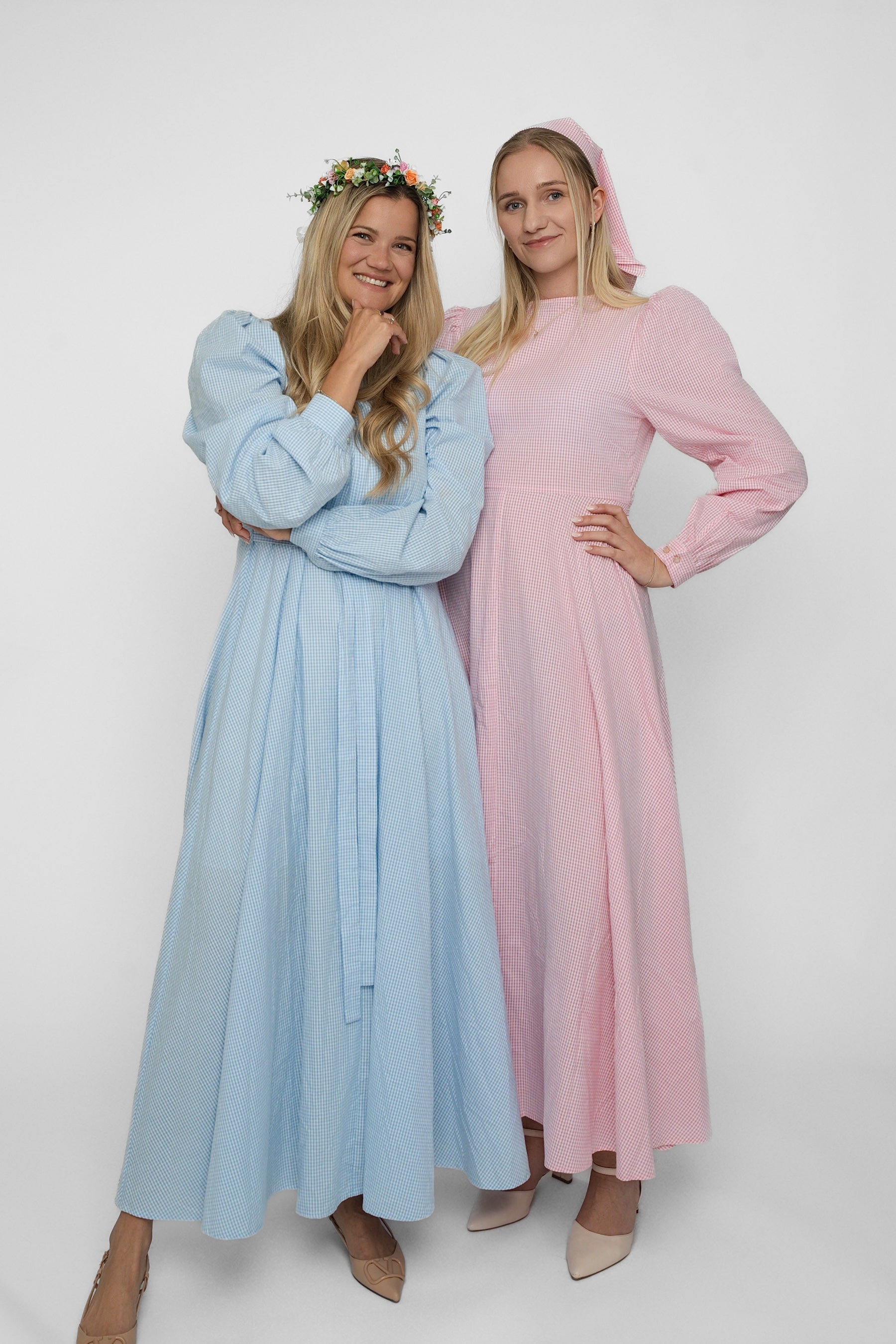 Finns i blått och rosa ginghammönster – ett mönster som aldrig går ur modet. Den matchande halsduken ger den sista touchen och fulländar outfiten.