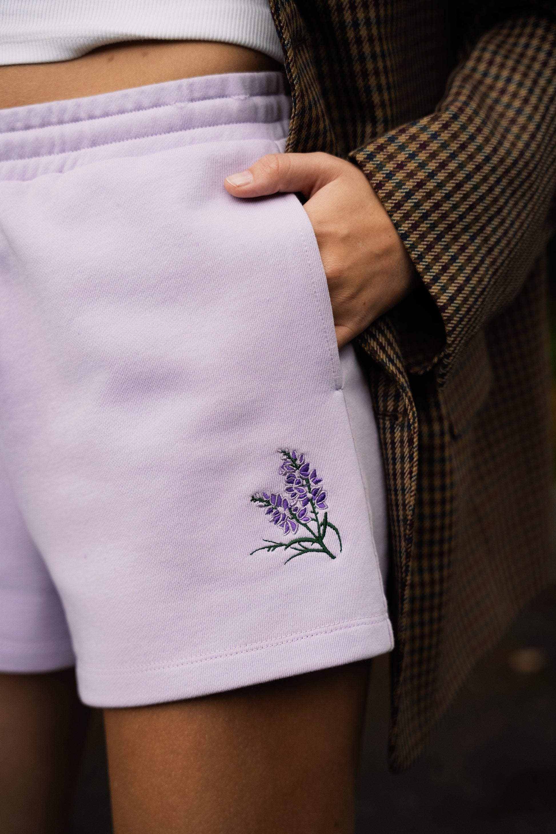 Designade med broderad signatur – Lyngblomman – på vänster ficka.